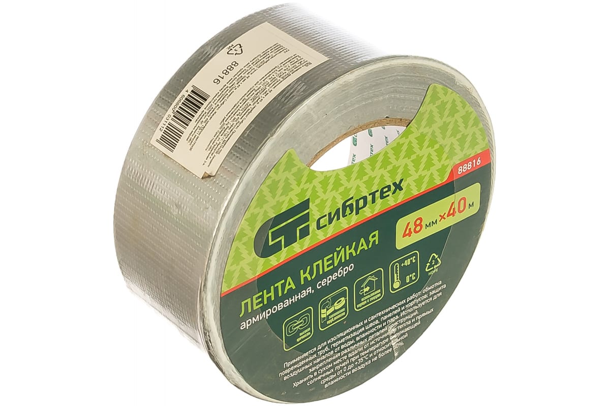 Клейкая лента армированная 48мм х 40м, СИБРТЕХ, серебристая (88816)