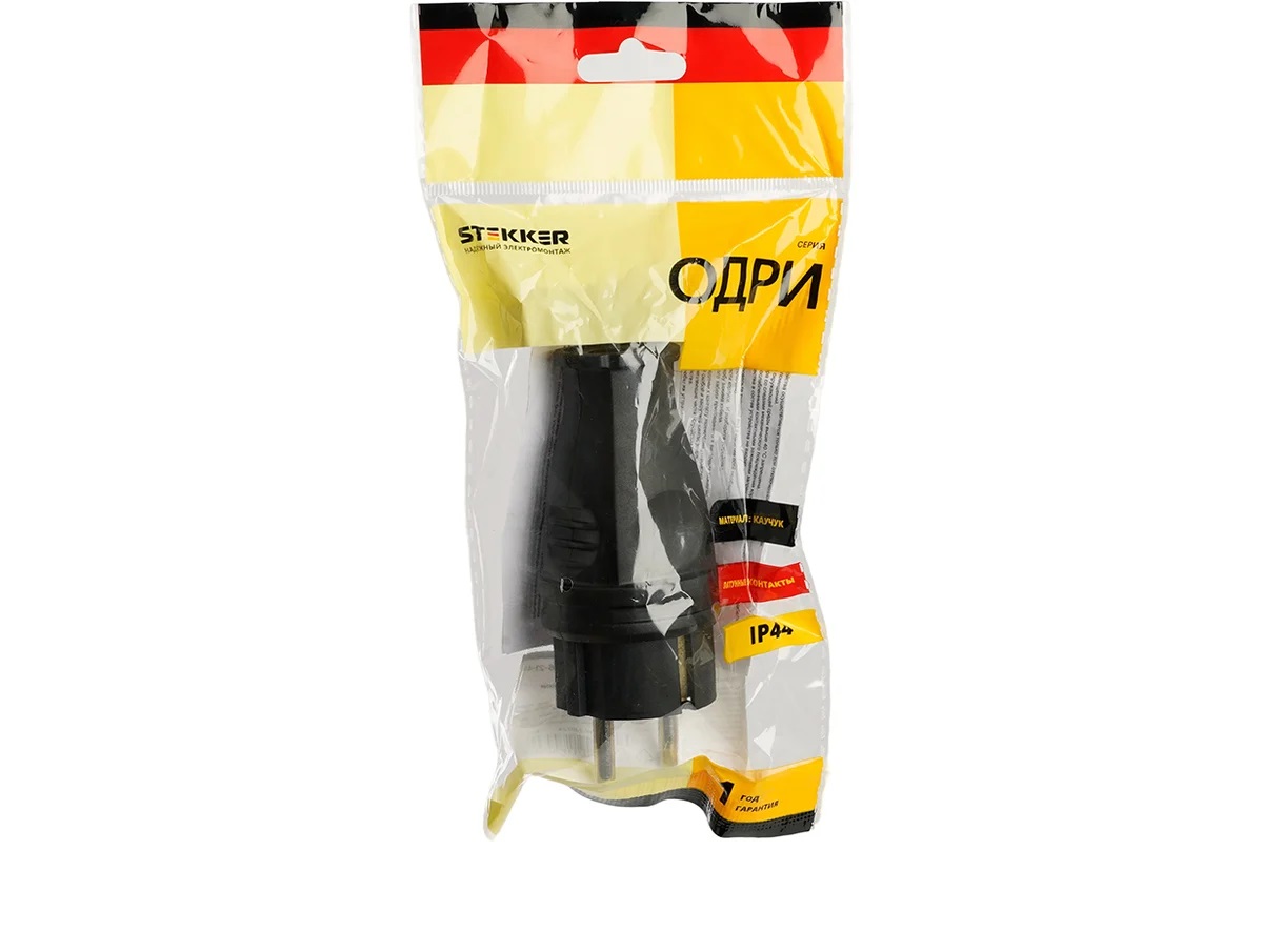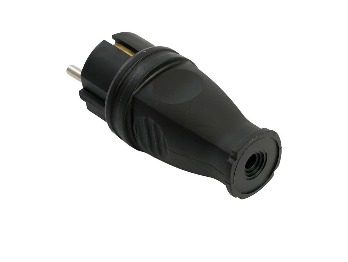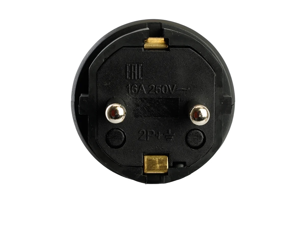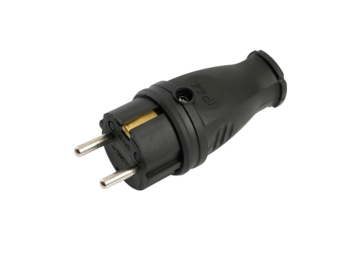 Вилка Stekker (RPG16-21-441), прямая с заземлением, каучук, 16А, 250V, IP44, черная