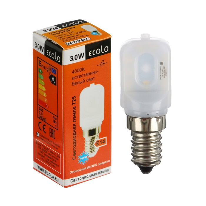 Лампа светодиодная E14, ECOLA, T25, 3W, 4000K, капсульная 270град., матовая, 55х25мм (для холодильников и шв. машин и т.д)