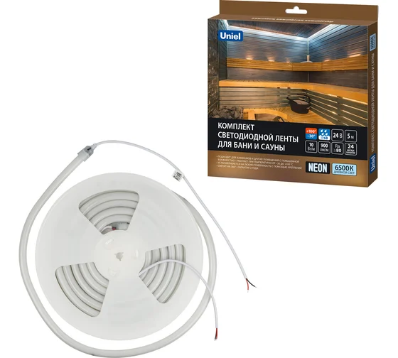 Термолента светодиодная SMD 2835, 120LED/m, IP68, 24V, 10W/m, IP68, 4000K, (ULS-N40) 16мм, для бани и сауны, катушка 5м, TM Uniel