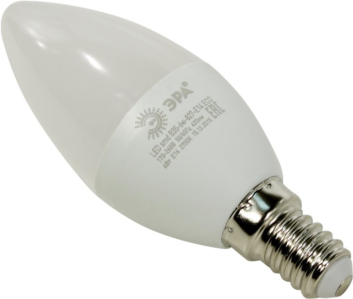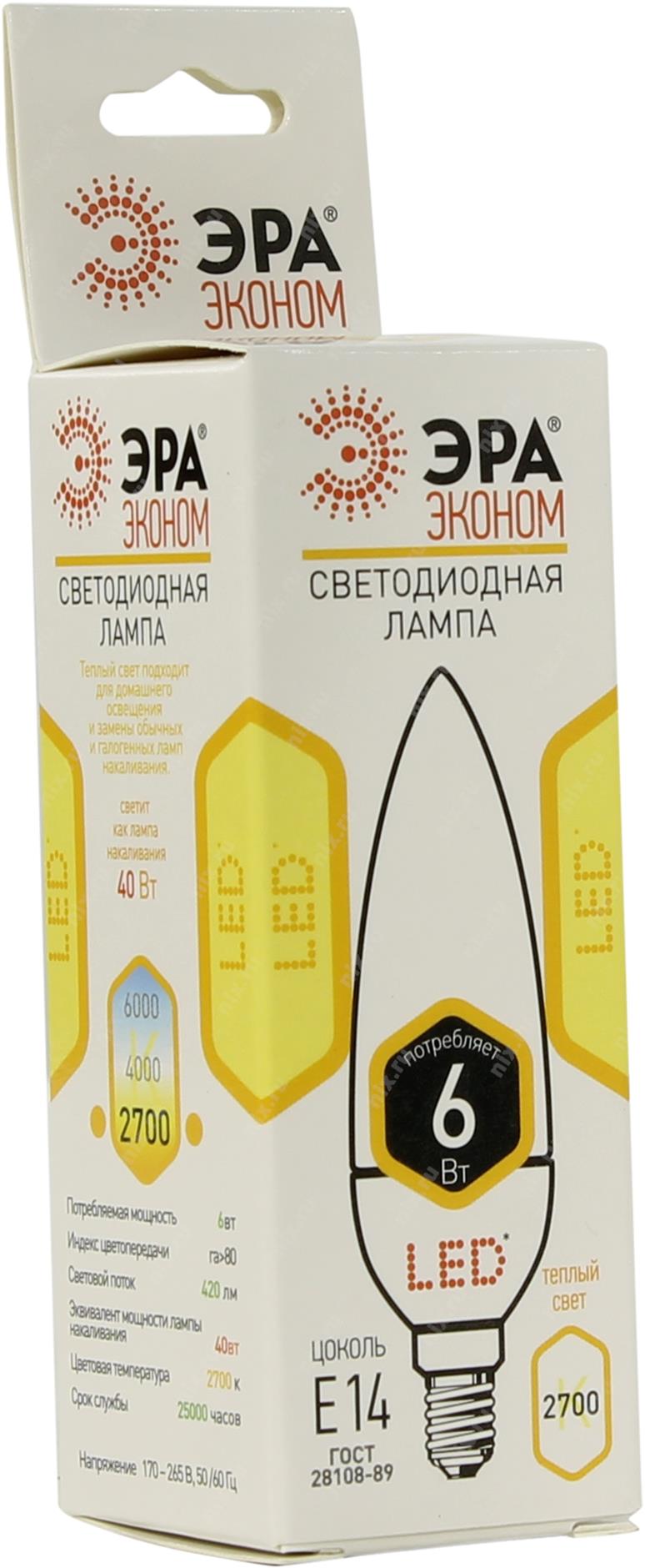 Лампа светодиодная LED E14, ЭРА, smd, B35, 827, 6W, 2700K (B35-6w-827-E14 ECO )